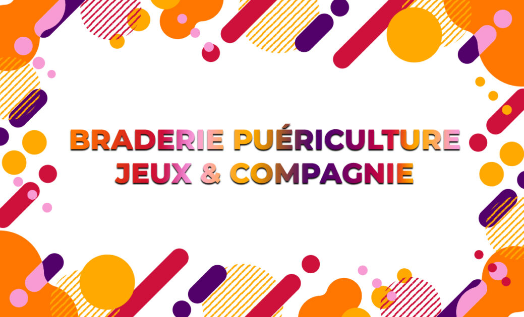 Samedi 21 mars à l’Éclat de 9h à 12h30, l’association Jeux et Compagnie organise sa 36è braderie puériculture et vêtements enfants (vêtements du premier âge jusqu’à 14-16 ans, matériels de puériculture, jouets d’occasion).