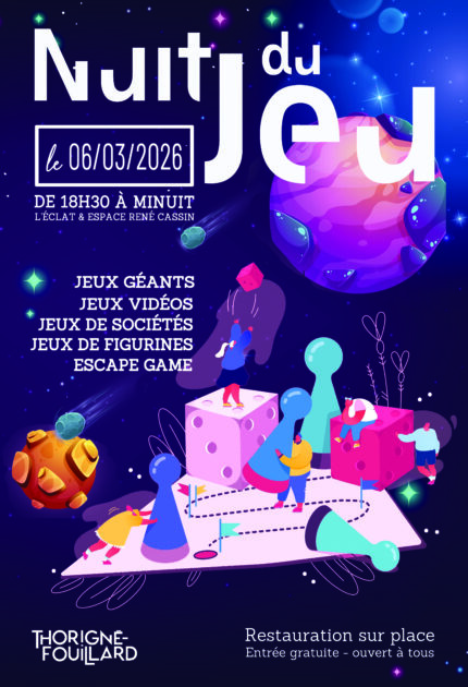 La 13è édition de la Nuit du jeu, organisée par l’association « Jeux et compagnie » et le service Enfance-jeunesse et Animations locales, se déroulera le vendredi 6 mars, à partir de 18h, jusqu’à minuit, à l’Éclat et à l’espace René Cassin.